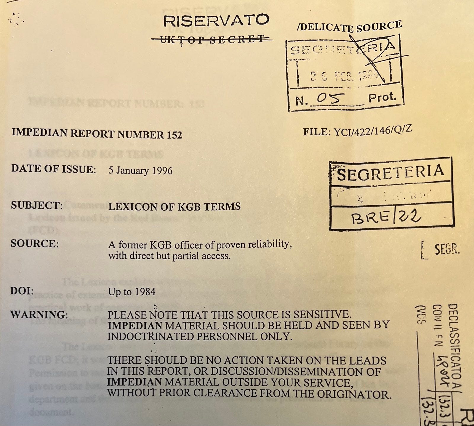 London shared copies of the Lexicon with NATO allies. The British declassified the document, which I received long ago from a source through the intelligence service of Italy, which also had declassified the publication.